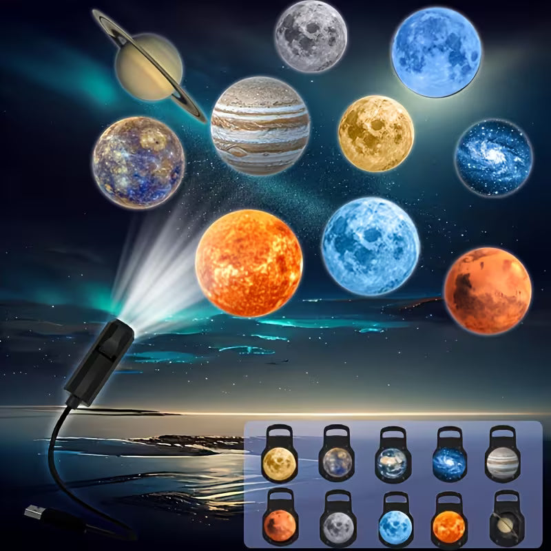 USB LED Planet Projector Light, 10/6/3 Projection Images, 360-Degree Rotating Lamp, Ceiling, Gift, Room Decoration, Photo Background, Projection Earth, Mars, Jupiter, Mercury, Sun, Saturn, Nebula, Gray Moon, Yellow Moon, Blue Moon, Photography
